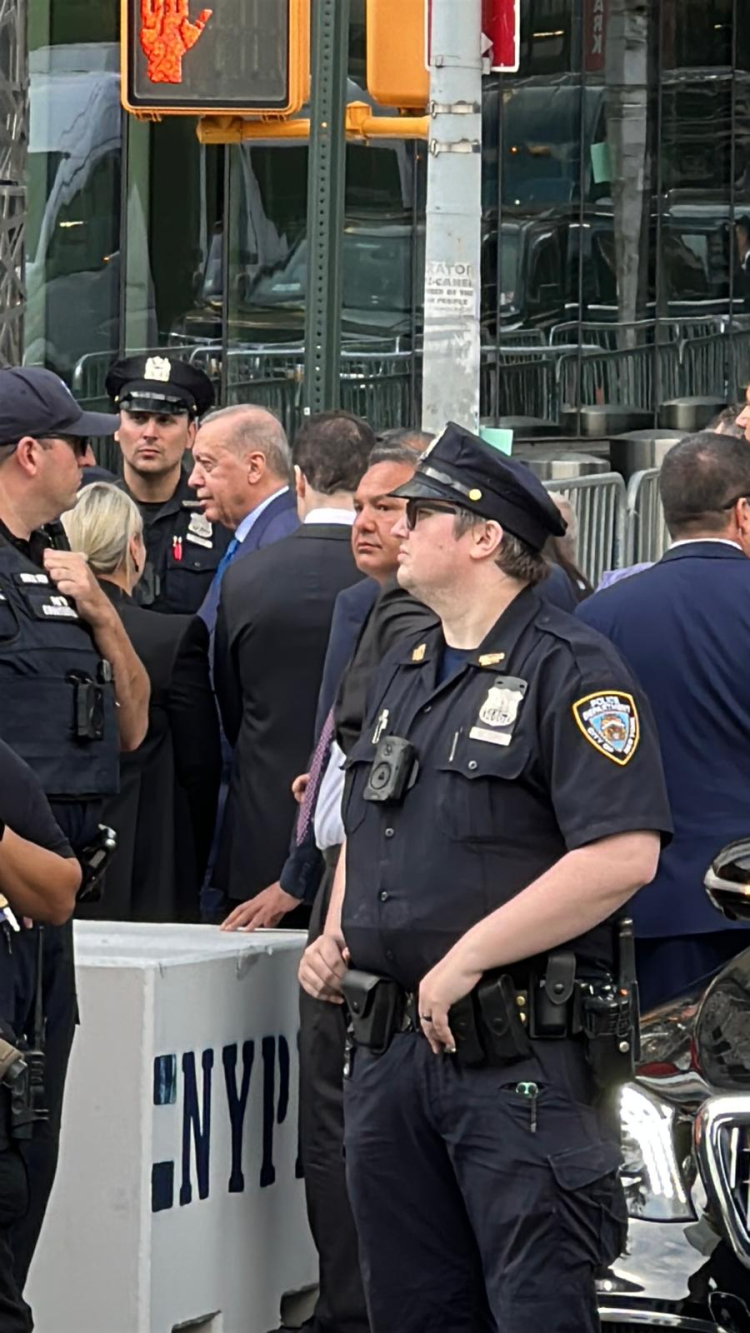 Cumhurbaşkanı Erdoğan’ın gelişi öncesi, New York’taki Türkevi binası önünde geniş güvenlik önlemleri alınırken, ABD’de yaşayan Türk vatandaşları da ellerinde Türk bayraklarıyla alanda toplandı. Erdoğan’ın konvoyunun alana gelişiyle birlikte, kalabalık büyük bir coşku yaşadı. Cumhurbaşkanı Erdoğan, kendisini bekleyen vatandaşları selamlayarak desteklerine teşekkür etti.