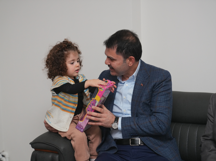 Bakan Kurum, Demirel’in torunu Nazlı ile de yakından ilgilenip oyuncak hediye etti.