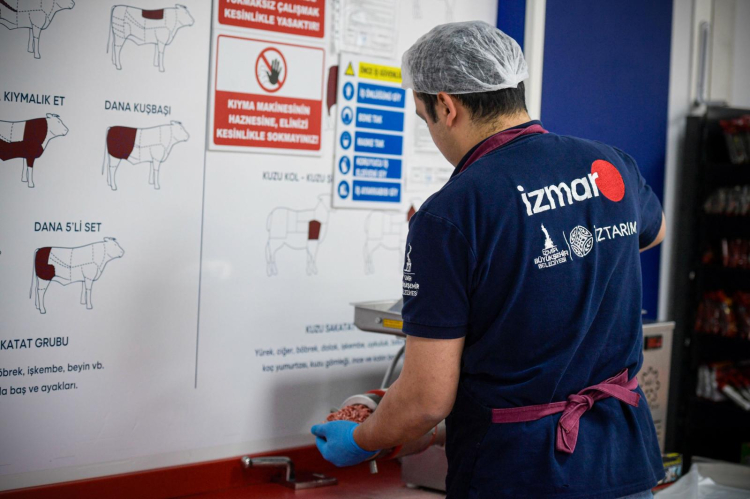 İZTARIM tarafından Ödemiş Et Entegre Tesisi’nde tamamen yerli besiden hazırlanan et ürünleri, İZMAR şubelerinde İzmirlilerle buluşmaya devam ediyor. Şu an dana kıyma 575 TL, dana kuşbaşı ise 650 TL’den satışa sunuluyor. Kıyma ve kuşbaşının yanı sıra İZTARIM bünyesinde görevli uzman kasaplar, karkas etleri işleyerek hijyenik koşullarda paketleyip İzmirlilerin tercihine sunuyor.