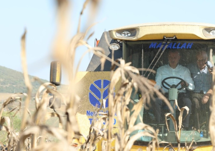 Körfez ilçesi Cumaköy’de devam eden mısır hasadına katılarak biçerdöverin direksiyonuna geçen Başkan Büyükakın, 5 yılda altyapı yatırımları hariç yaklaşık 1 milyar TL üreticilere destek sağladıklarını belirtti.