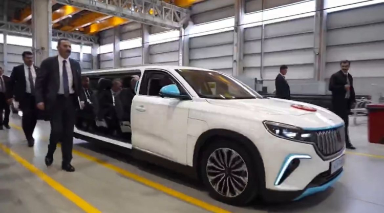 Cumhurbaşkanı Erdoğan, Kahramankazan'da BMC Ankara Tank ve Yeni Nesil Zırhlı Araçlar Üretim Tesisi Açılışı ve İlk Yeni Altay Tankları Teslimat Töreni'ne özel üretim limuzun Togg'la geldi.
