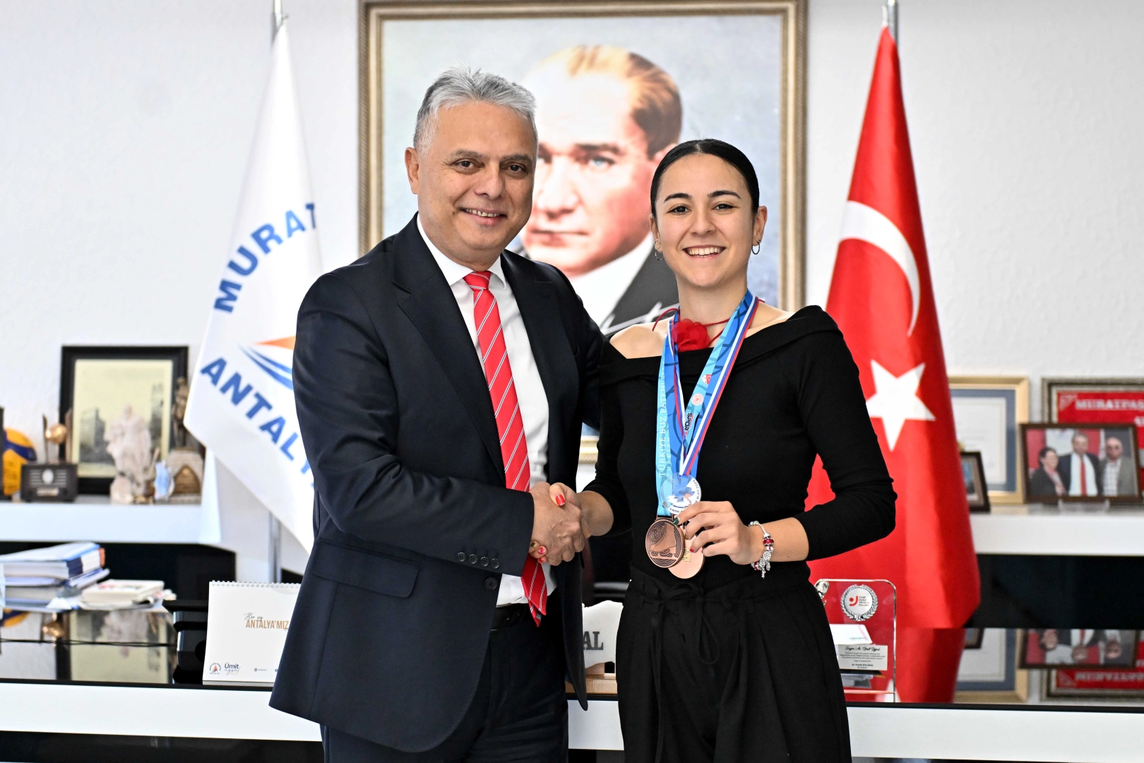 Antrenmanlarını belediyenin bu pistinde devam eden Eren, madalyalarıyla Başkan Uysal’ı makamında ziyaret etti. Uysal, Eren’i elde ettiği başarıları dolayısıyla tebrik etti. Uysal, güneşin kenti Antalya’da 12 ay açık olan buz pistinde bugün Avrupa dereceleri elde eden sporcuların yetiştiğini görmenin ayrı bir mutluluk olduğunu dile getirdi.