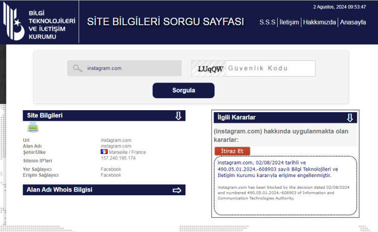 Bilgi Teknolojileri ve İletişim Kurumu'nun internet sitesinde yer alan bilgiye göre Instagram'a bu sabah erişim engeli getirildi.