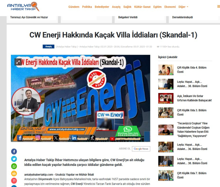 ANTALYA (İGFA) – Antalya’da faaliyet gösteren CW Enerji firmasının skandalları bitmiyor. 2024 yılında hakkında kaçak villa iddiaları boy gösteren ve bir çok haber sitesinde yer alan CW Enerji’ye müşterilerinden de tepki yağıyor.