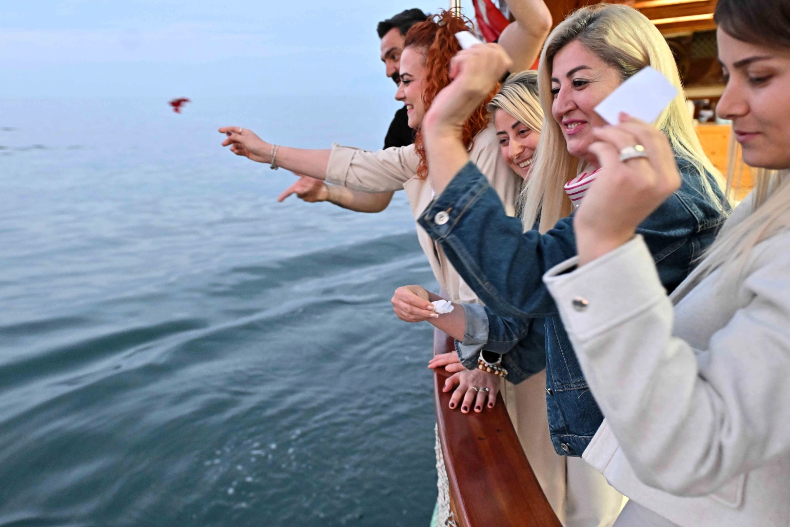 Saat 05.30’da limandan hareket eden teknelerde katılımcılara simit ve çay ikram edildi. Kaleiçi’nin tarihi dokusu ve Akdeniz’in eşsiz manzarası eşliğinde dilekler, güneşin doğuşuyla birlikte serin sulara bırakıldı.