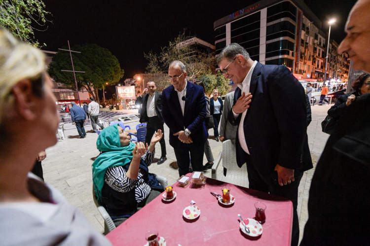 Başkan Tugay iftarın ardından Ünal Işık ile birlikte Gaziemir Abdullah Arda Meydanı'na geçerek buradaki yurttaşlarla sohbet etti.
