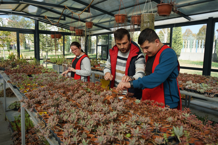 Konya Selçuklu'da otizmliler sukulentleri sevgiyle yetiştiriyor