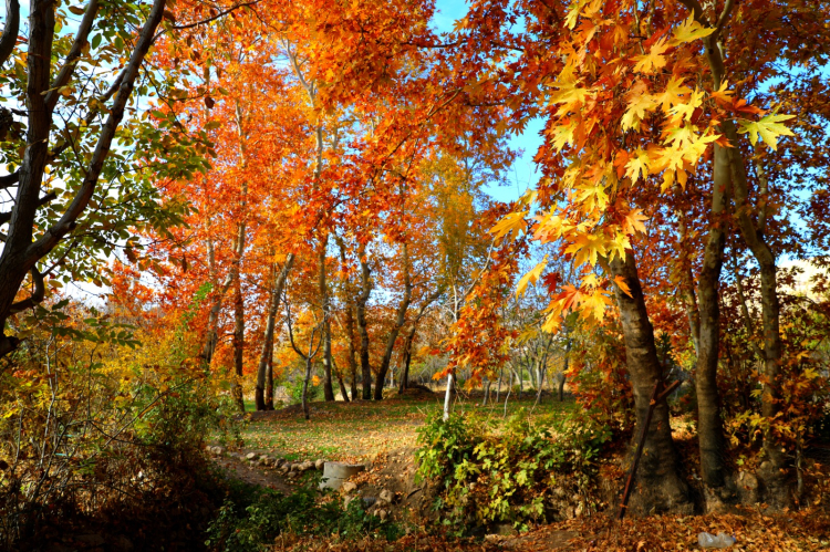 Dünyaca ünlü festivallik kirazlarıyla tanınan vadide, yaklaşık 8 kilometre boyunca uzanan yürüyüş yolları, sararmış yapraklarla kaplı patikalar ve rengârenk ağaçlar sonbaharın en canlı hâlini gözler önüne seriyor.